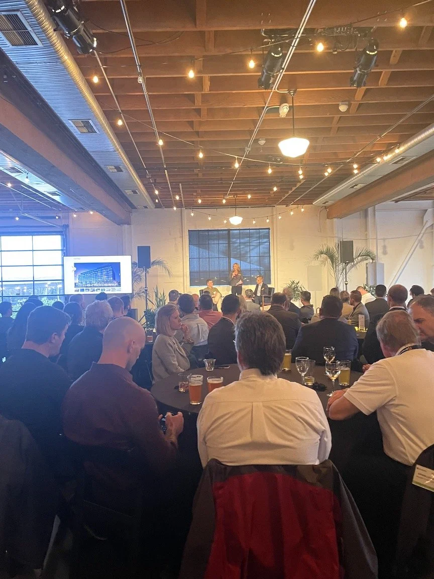 The International Mass Timber Conference, held in Portland, OR, is the largest gathering of mass timber experts worldwide. While it may be the largest focused on mass timber, this seventh annual conference is still relatively new in the building industry. Our co-founders Lisa and Adam attended last year and returned enthusiastically with many lessons learned. We saw sending two new team members as an opportunity to grow our studio knowledge. My teammate Conor and I represented Synecdoche at the conference this year, and I had the chance to speak on a panel focused on how architects and engineers can work with different code officials to approve projects successfully.
