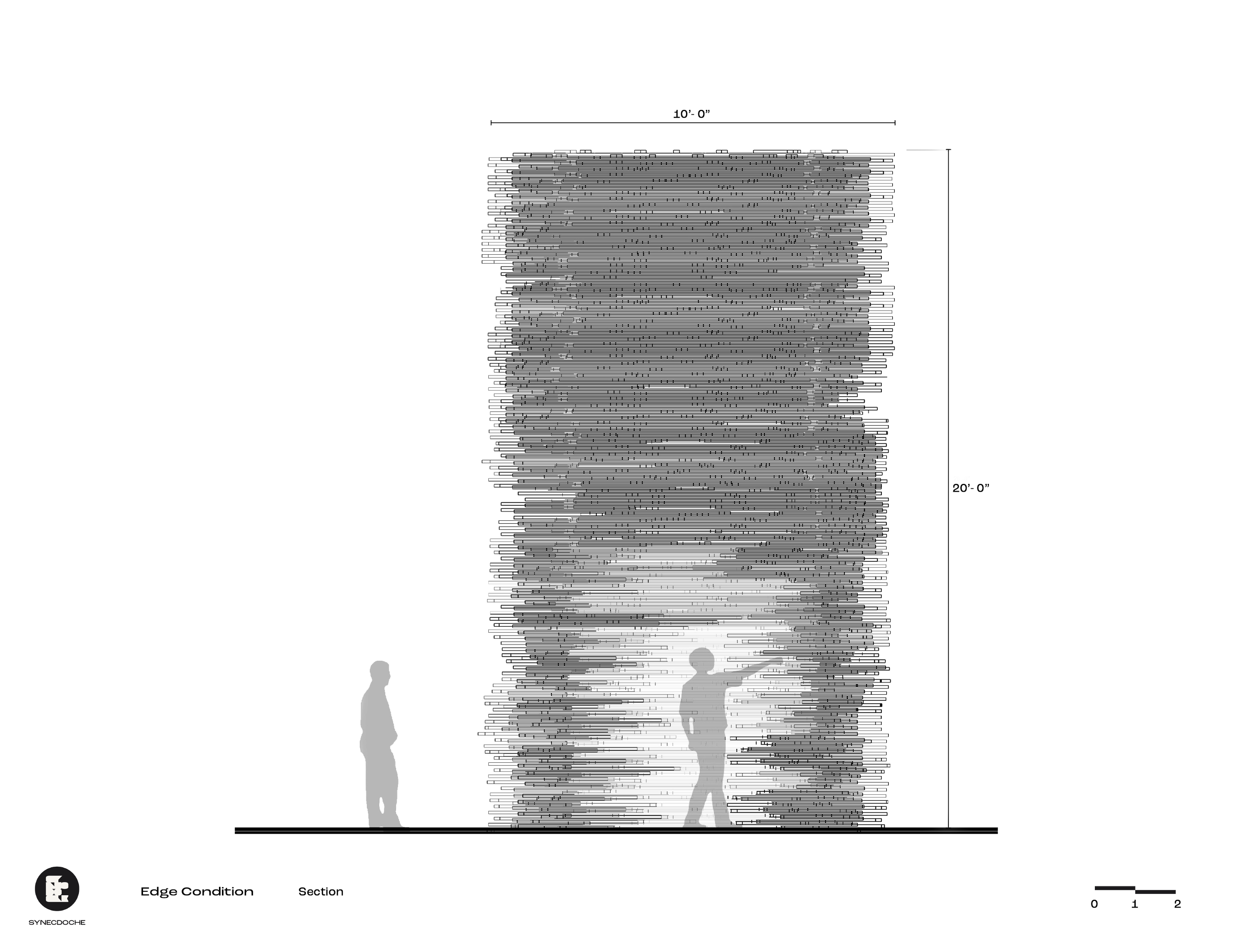 Sponsored by the Young Architects Forum of Atlanta and Modern Atlanta!, Synecdoche designed and constructed Edge Condition, a public installation that presents architecture at a different physical and temporal scale. A short existence of the experience replaces the density of architecture as a permanent object with the ephemeral sensitivity of a condition in time. The installation has become a means of participation by public and practice to work through ideas in iteration. Installations by nature has a plasticity, one which can transition and adapt.