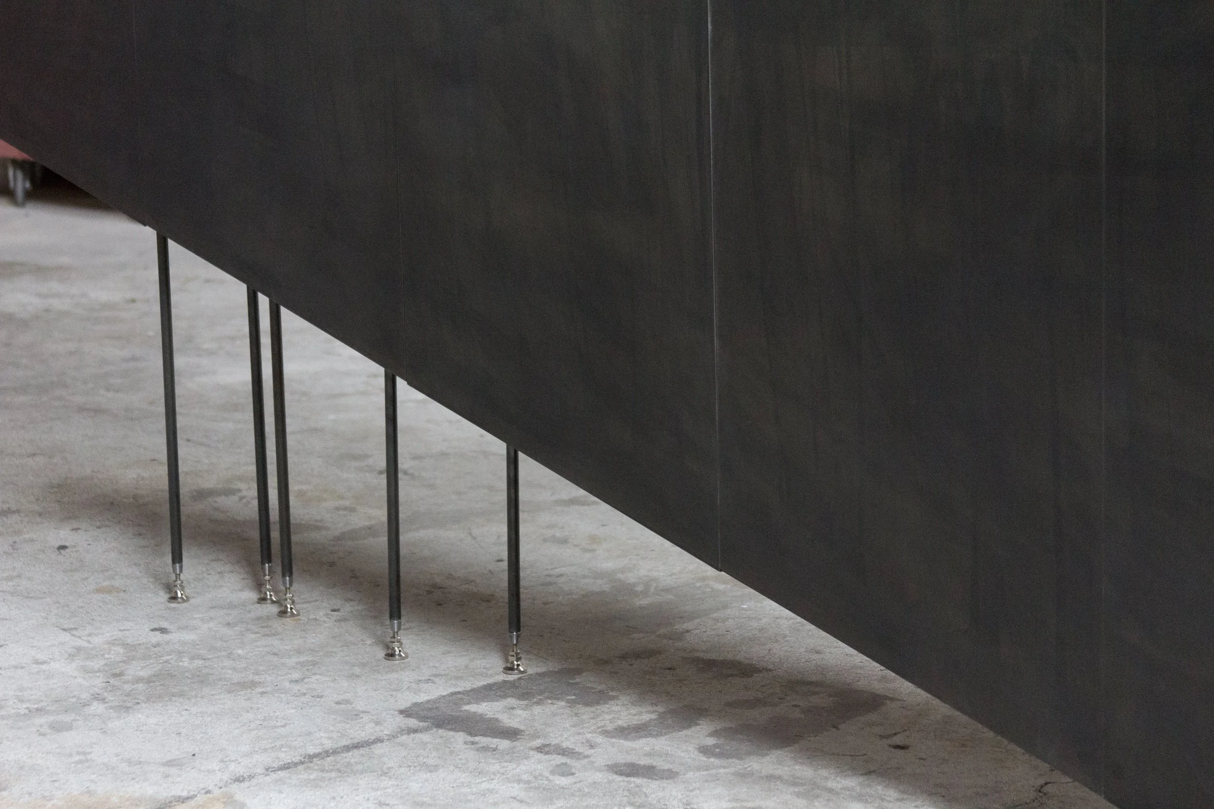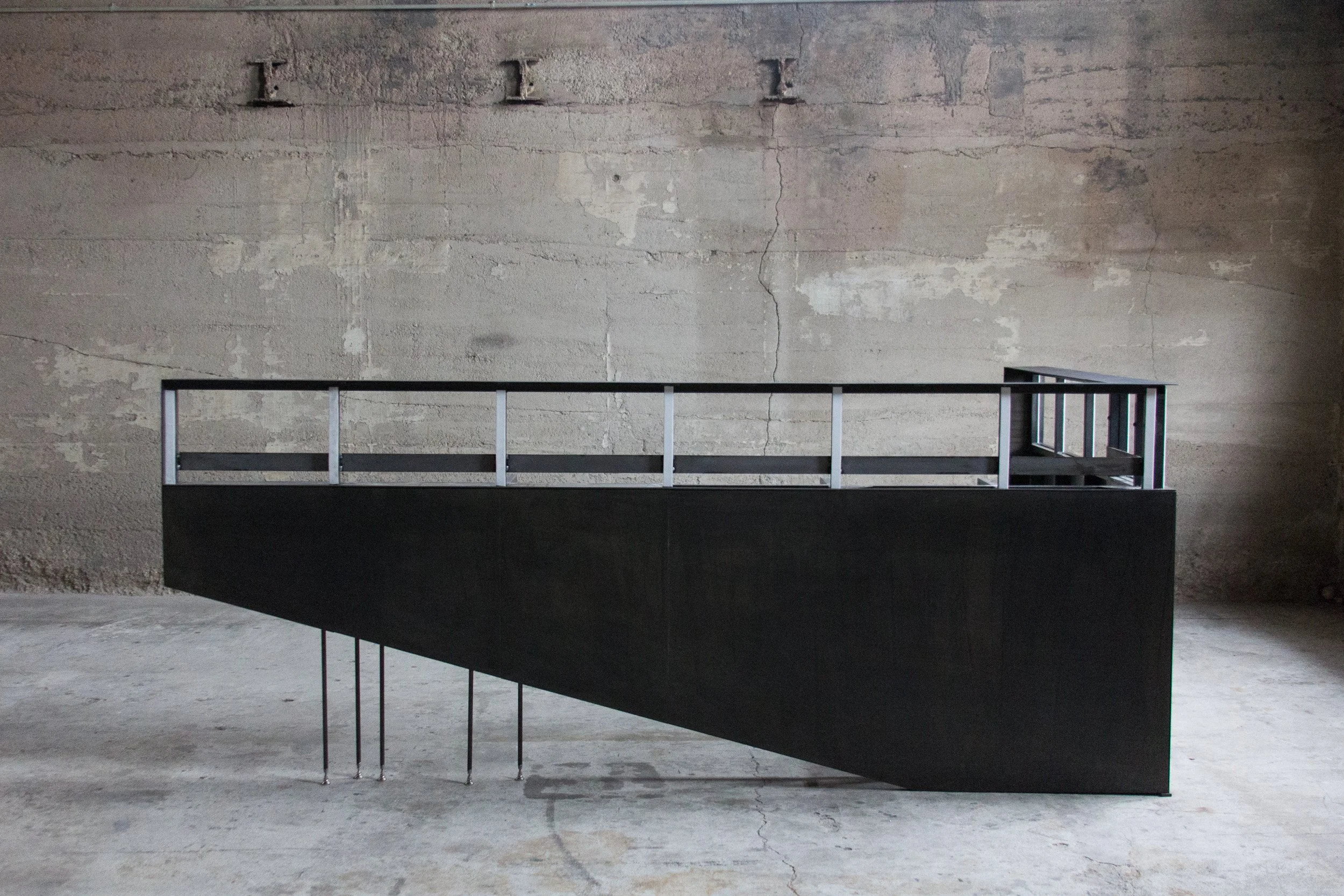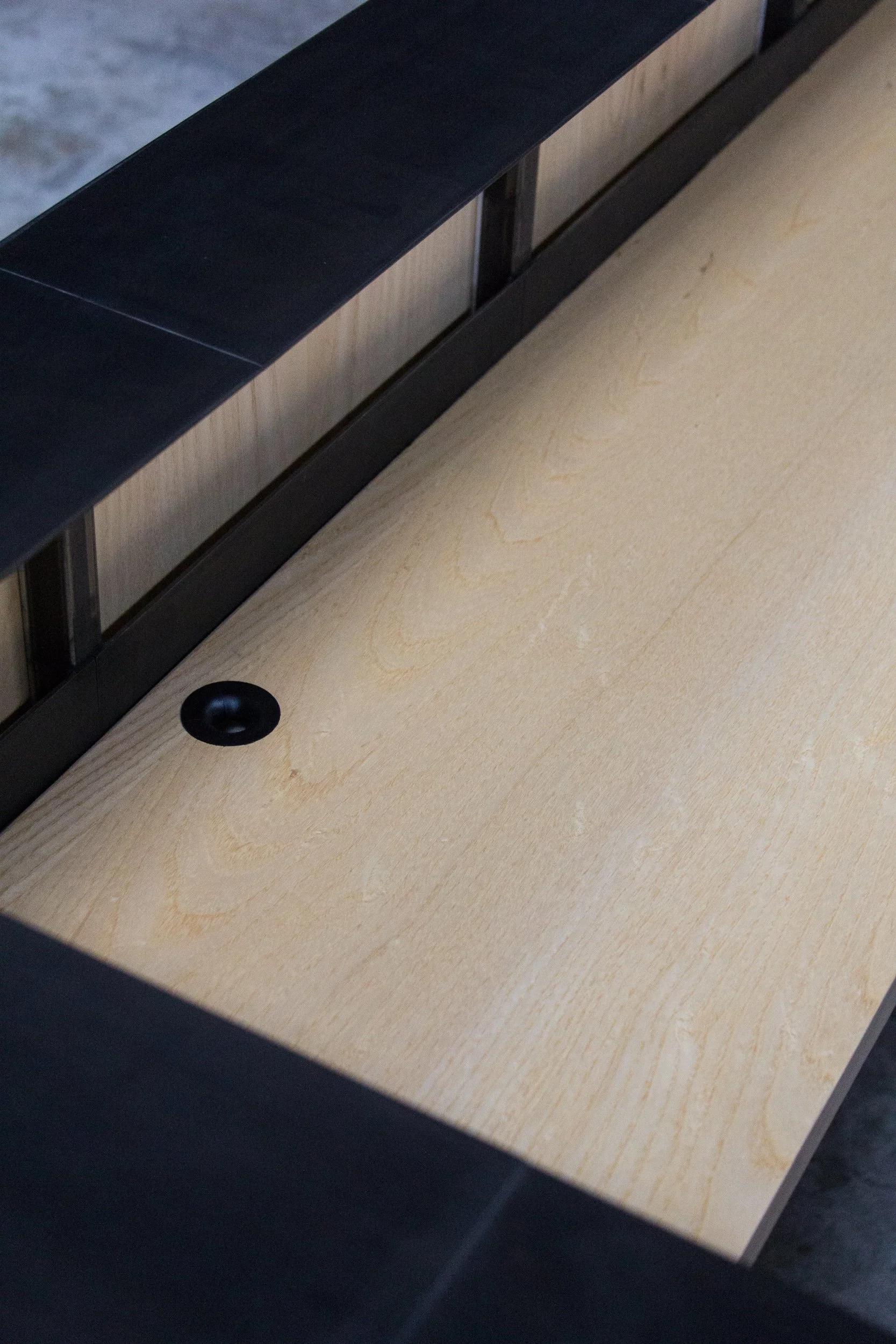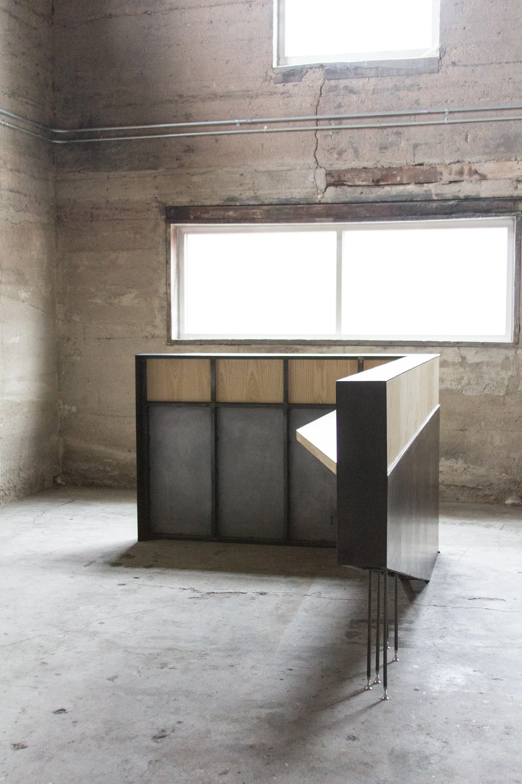 Reception desk designed and fabricated by Synecdoche for Duo Security at the front entry for their new Allmendinger Building offices in Ann Arbor, MI.