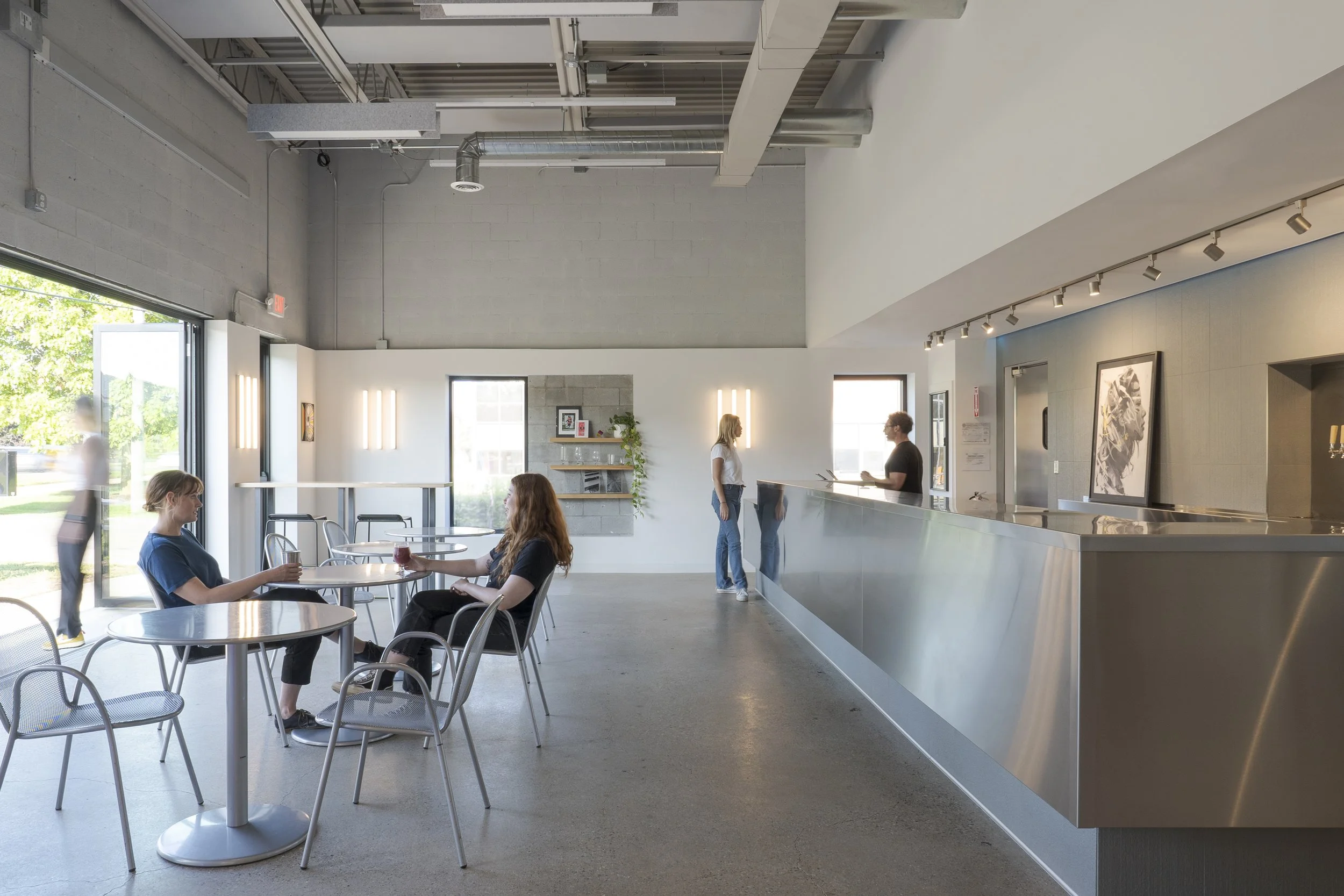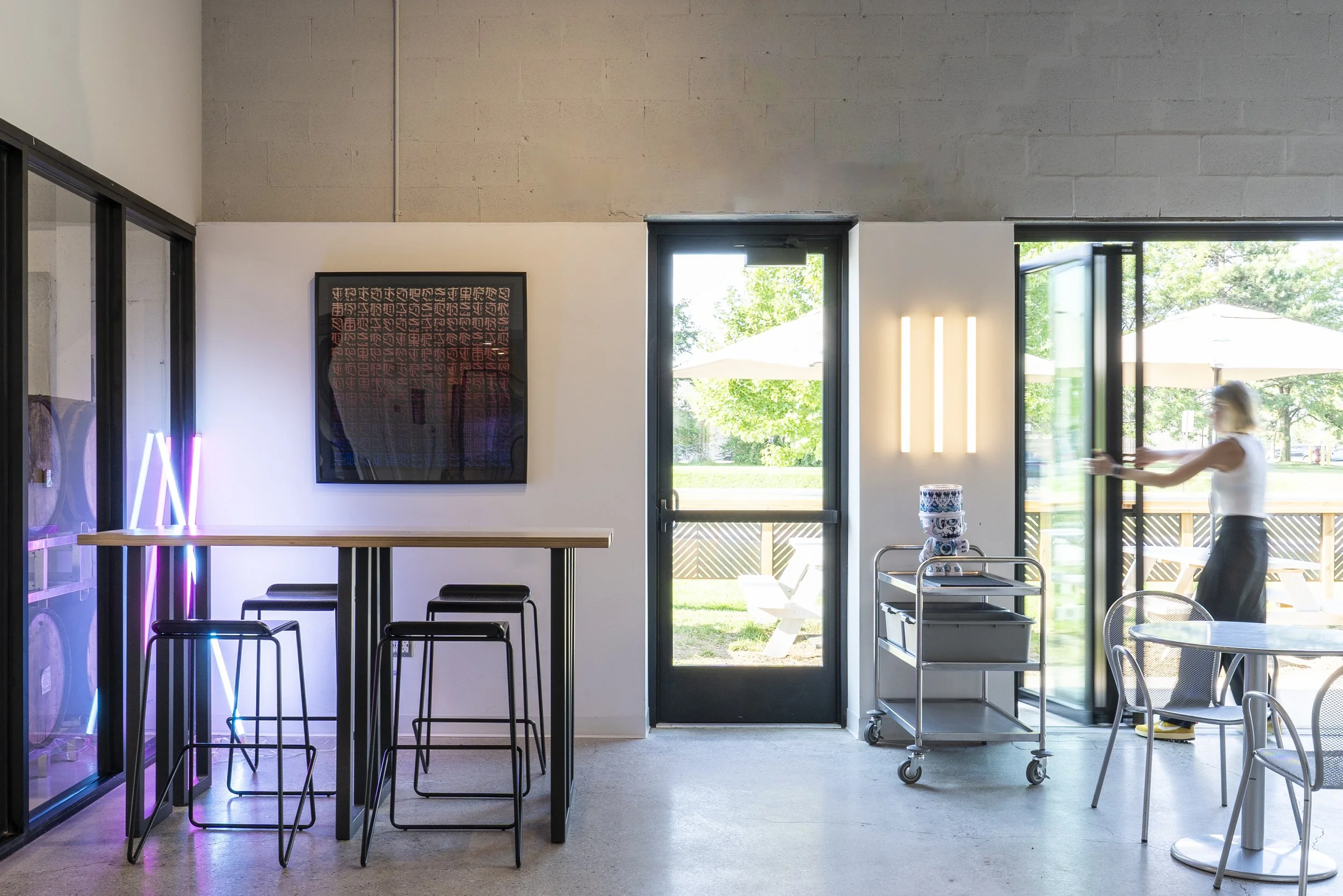 This fresh taproom and brewery for Mothfire Brewing expands the reach and vision for a popular local brewery. Opened in July 2023, the space is a beacon for the community, drawing people in by bringing together art, music, and good beer.
