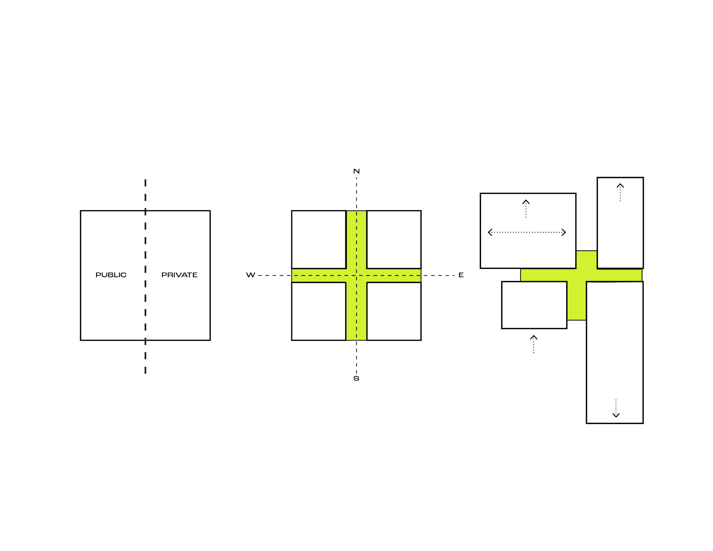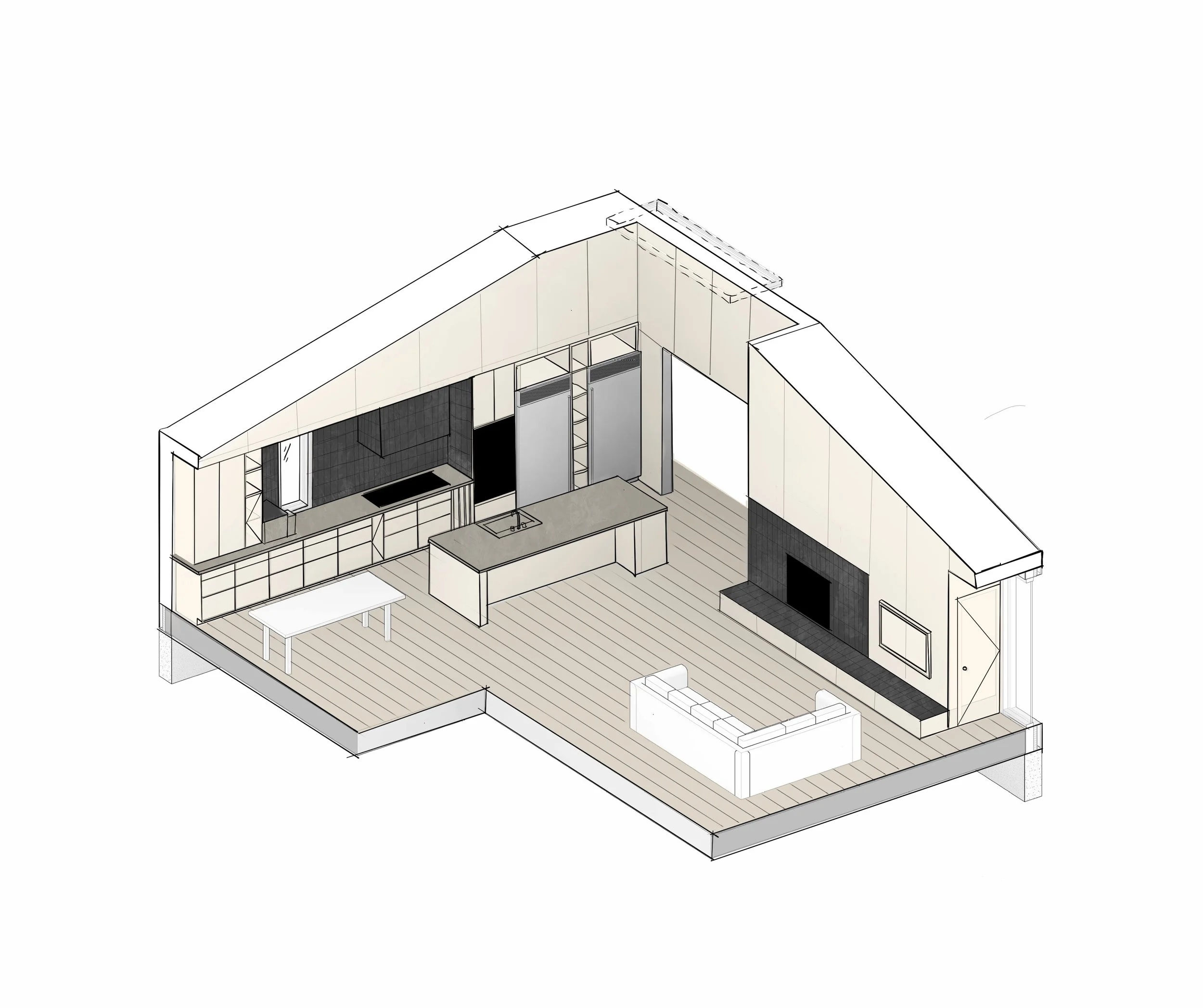 Incorporating influences from Japanese and Scandinavian cultures, the Pond House takes on the form of interconnected smaller structures nestled within the landscape, eschewing a singular imposing mass. Expansive openings at the end of each axis act as navigational markers, anchoring inhabitants within the natural surroundings.