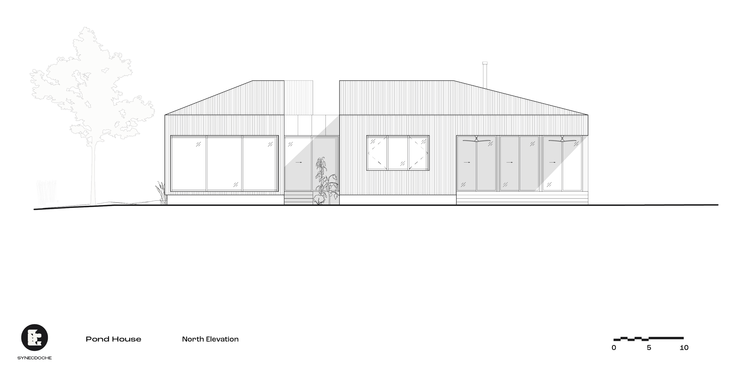 Inspired by two decades spent living in Chicago and working in the hospitality industry, the clients were enamored by the relaxed lifestyle and picturesque landscapes of Michigan's west coast. Their acquisition of a retired apple orchard led them to collaborate with Synecdoche in crafting a residence adjacent to North Coast Inn.
