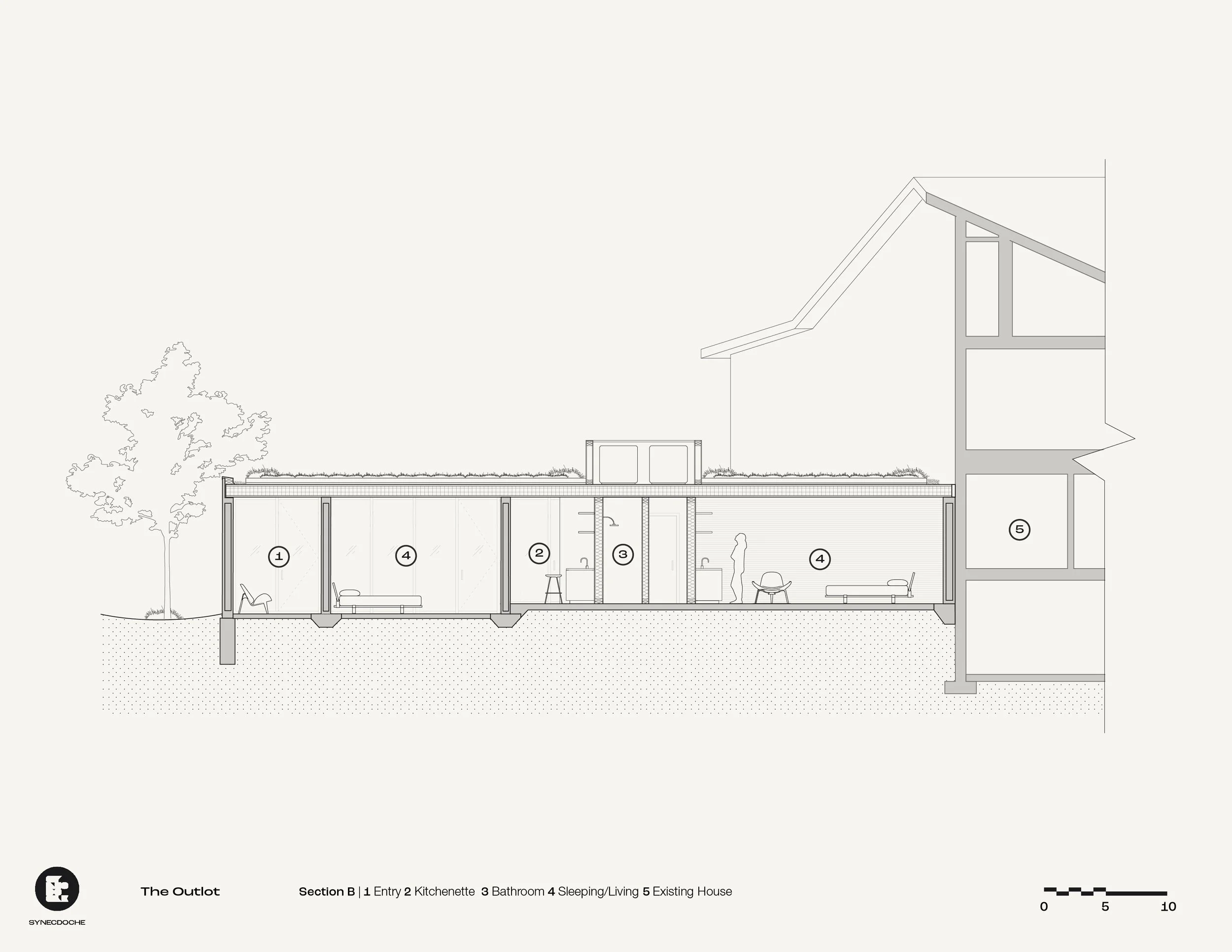The Outlot combines innovative building construction with a unique geometry to balance the spatial nuances of an additional dwelling unit. By breaking the status quo for housing solutions and foregrounding climate responsibility, the project serves as a catalyst for change.